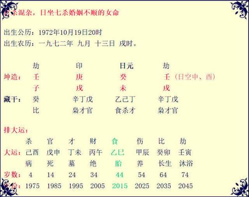 官杀星代表丈夫,混杂的官杀星意味着女性在情感上可能经历波折,容易遇到已婚或离异的男性。这种情况下,女性嫁二婚夫的可能性较大。