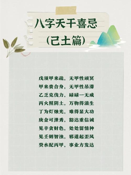 天干己土作为一种独特的五行元素,在命理中具有重要的作用。了解己土的特点及其在命理中的影响,有助于我们更好地理解个人命运,为生活提供指导。在现实生活中,我们应当发挥己土的稳重、包容等特点,努力成为一个有耐心、有责任心的人。