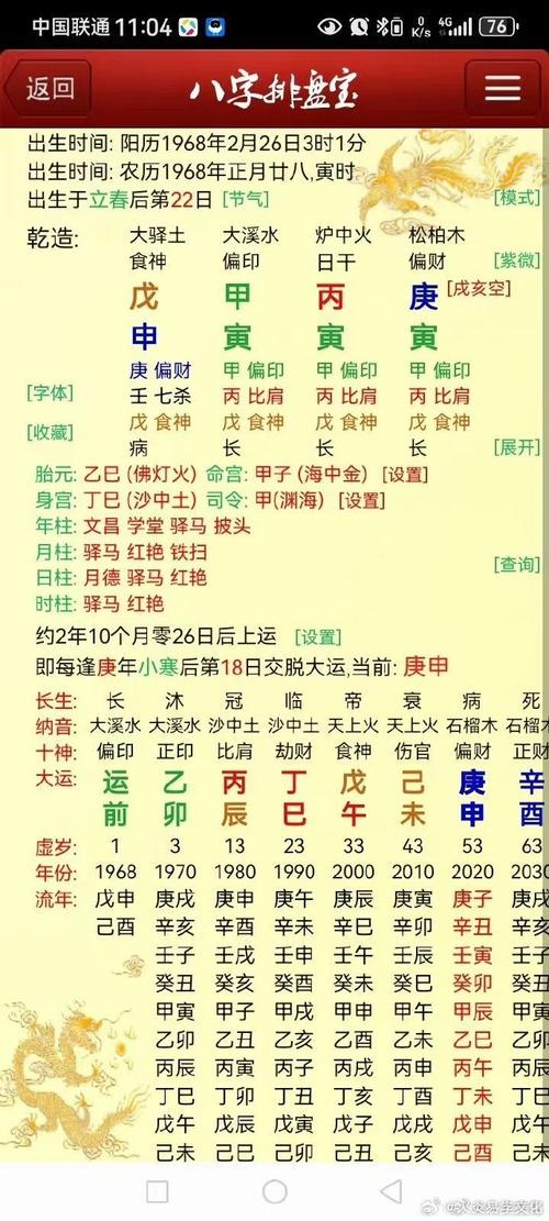 八字命理,又称生辰八字,是中国传统命理学的重要组成部分。它通过分析一个人出生的年、月、日、时所对应的天干地支,来推断一个人的性格、命运、健康、婚姻等方面的情况。