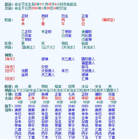 3. 日柱分析:如前所述,日柱代表配偶,通过分析日柱的天干地支,可以了解双方的婚姻状况。例如,日柱中天干地支相合,表示双方感情深厚;若相冲相克,则婚姻容易出现矛盾。