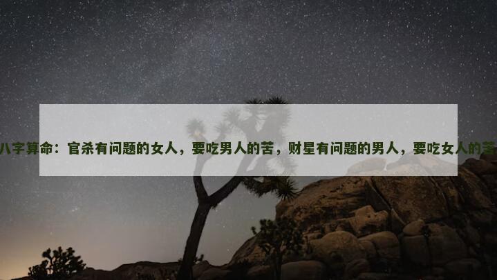 官杀有问题的女人要吃男人的苦,财星有问题的男人要吃女人的苦,这一论断不仅揭示了男女间因八字不同而产生的复杂关系,还暗示了各自在情感与事业上可能遭遇的挑战。